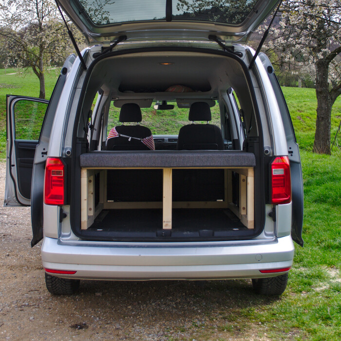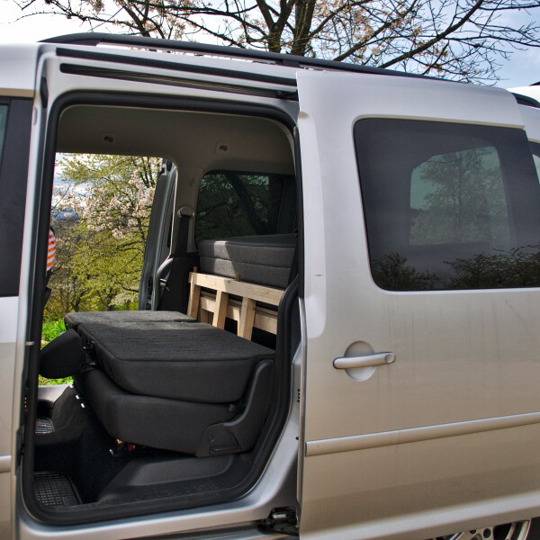 Aus einem Kundenauftrag, der einen Urlaub in einen Kangoo mit gleichzeigter Lösung für das Gepäck möglich machen soll entwickelte sich ein kompakter Ausbau.