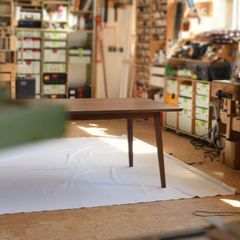 Fertigung eines eleganten Esstisches aus Nussbaum.