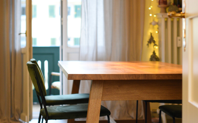 Für einen Kunden fertigten wir nach seinen Vorgaben einen bodenständigen, ehrlichen Esstisch.