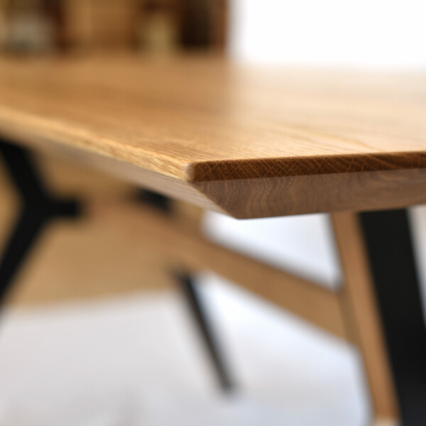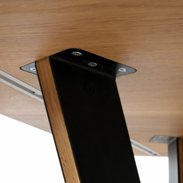 Dank schräg angeordneter Beine in Kombination mit einer Mitteltraverse bietet er maximale Beinfreiheit, egal ob zu viert, zu sechst oder zu zwölft. Perfekt für Eckbänke, ohne störende Tischbeine im Weg.