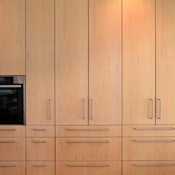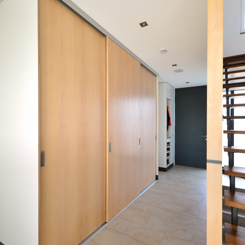 Raumhohe furnierte Schränke mit durchgehender Maßerung