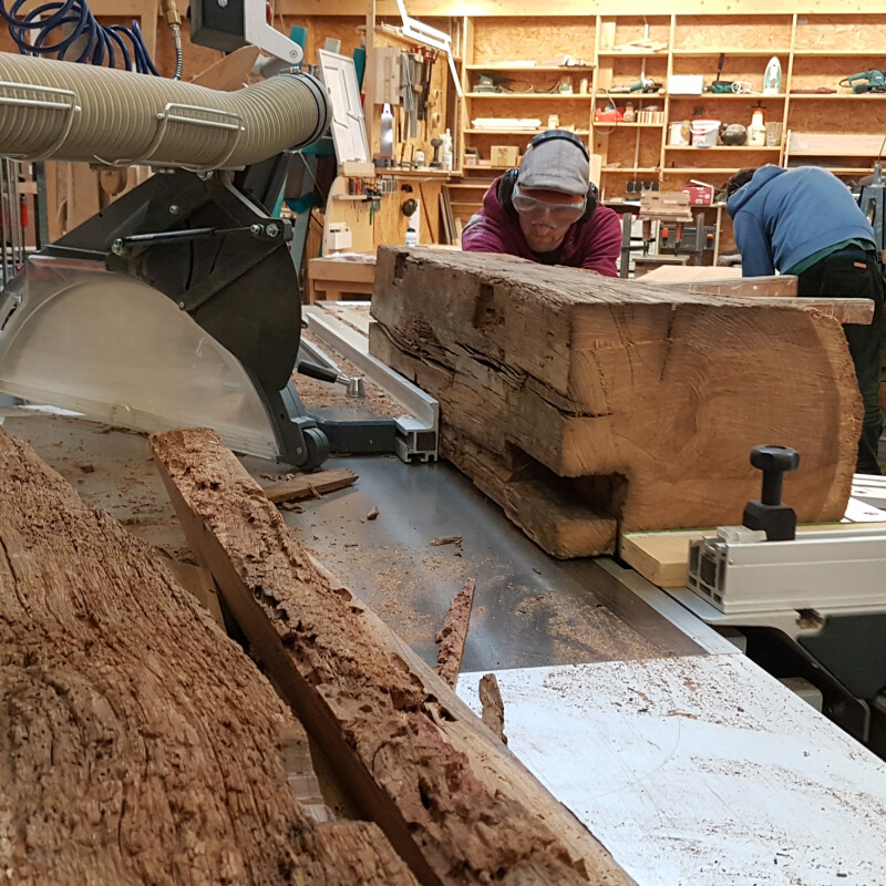 Im rechten Bereich wurden die gesamten Lüftungsleitungen der Hausinstalltionen verkleidet
