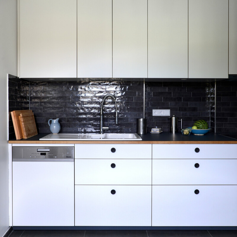 Durch den neuen Grundriss wurde die Küche in einem Durchgangszimmer realisiert.