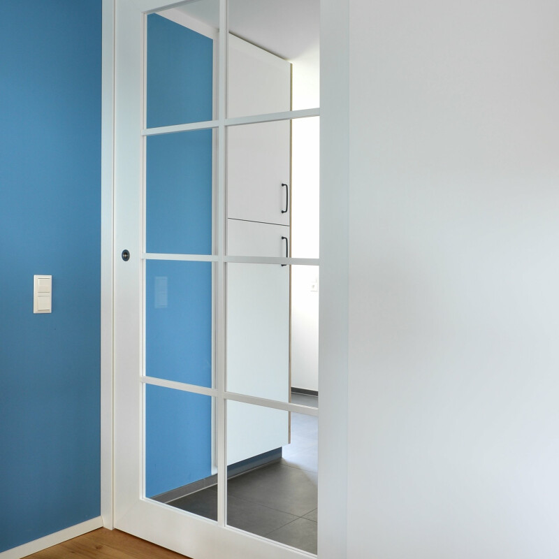 Doppelte Schiebtür mit Sprossen raumhoch in Tasche
