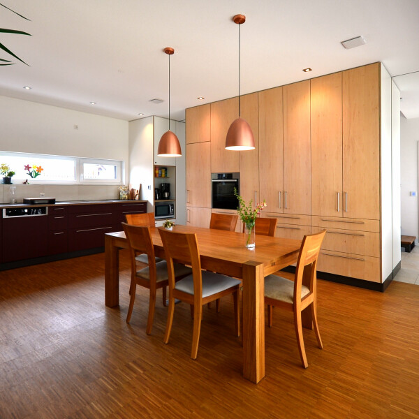 Eine frühzeitige gemeinsame Planung ermöglichte ein Küche mit einem ganz idividuellen Grundriss.